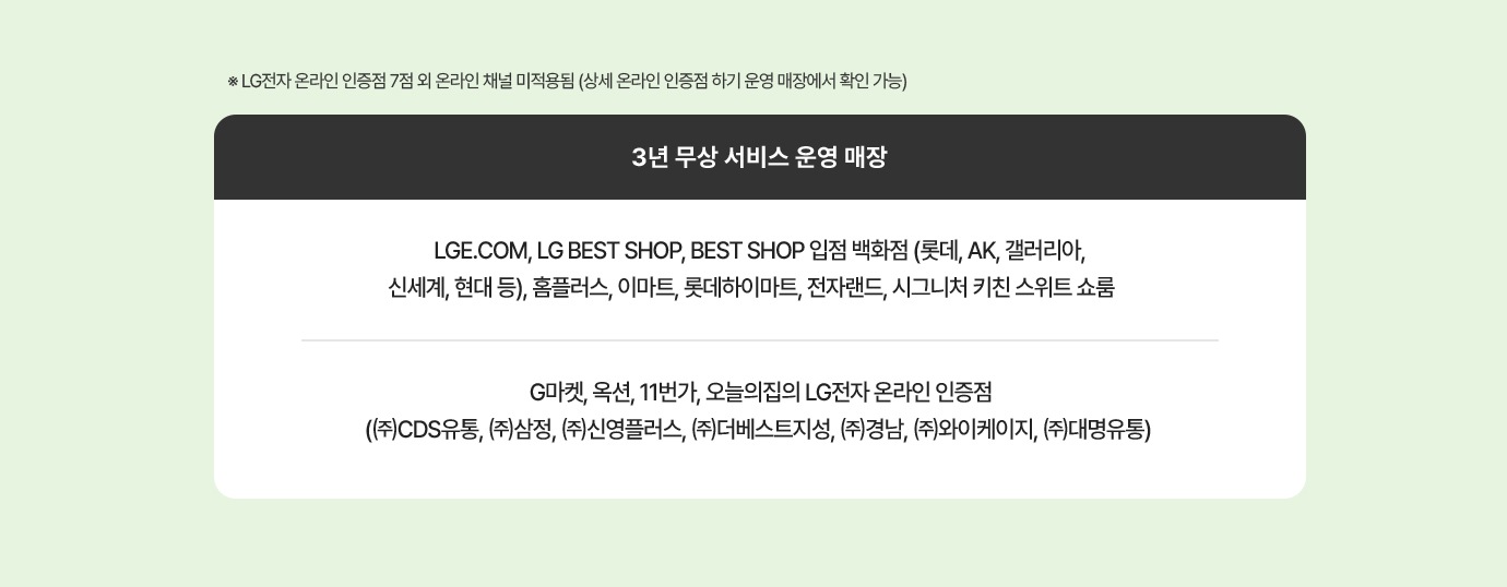 ※ LG전자 온라인 인증점 7점 외 온라인 채널 미적용됨 (상세 온라인 인증점 하기 운영 매장에서 확인 가능)