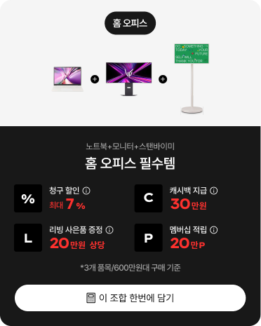 - LGE.COM 혜택의 경우 LGE.COM에서 구매한 고객에 한 해 혜택이 지급됩니다.