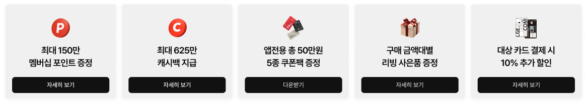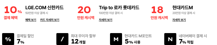 - 카드 캐시백 혜택 적용 모델은 기획전 페이지 하단 ‘제품보기’에서 확인 할 수 있습니다.