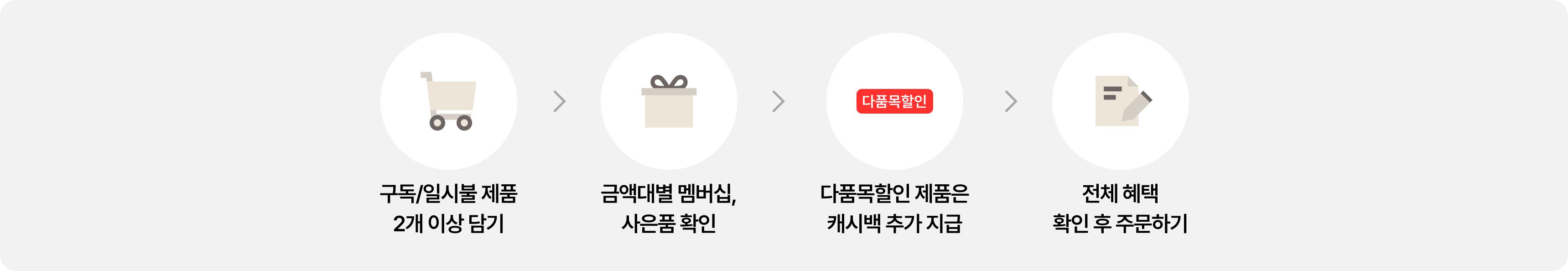 - 행사 기간 내 구매하신 제품의 합산 금액 기준으로 혜택이 지급됩니다.