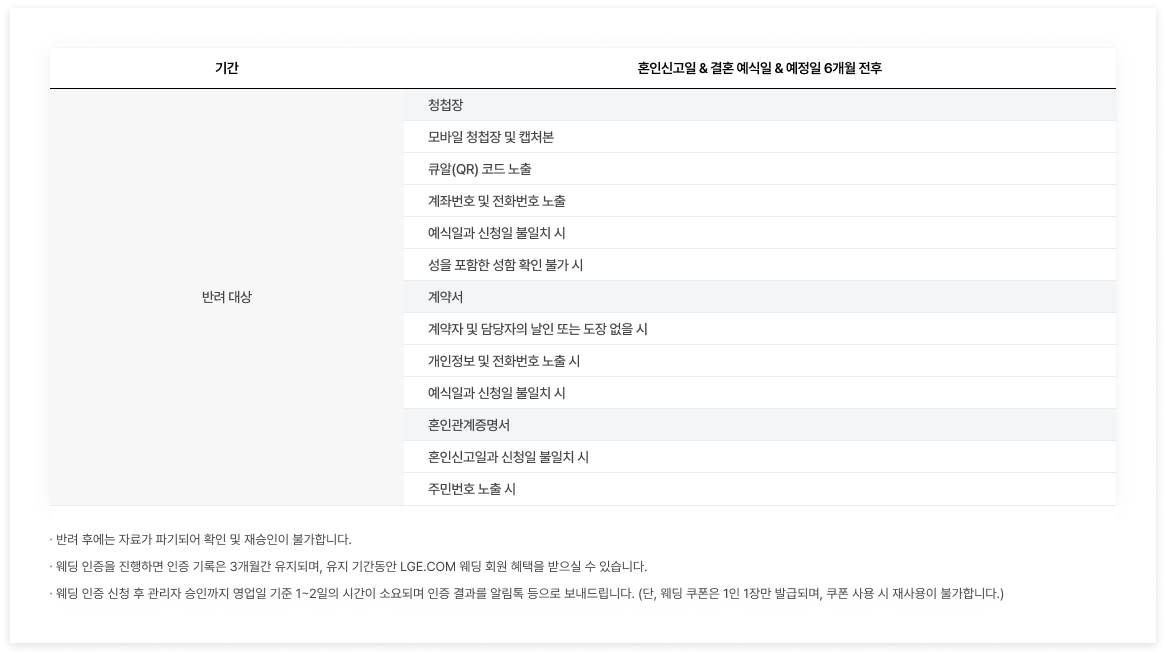 | 이름, 연락처, 배우자 이름, 결혼 증빙자료 (혼인관계증명서/청첩장/예식장 계약서 내 증빙 정보), 결혼 예정일 또는 혼인신고일 |