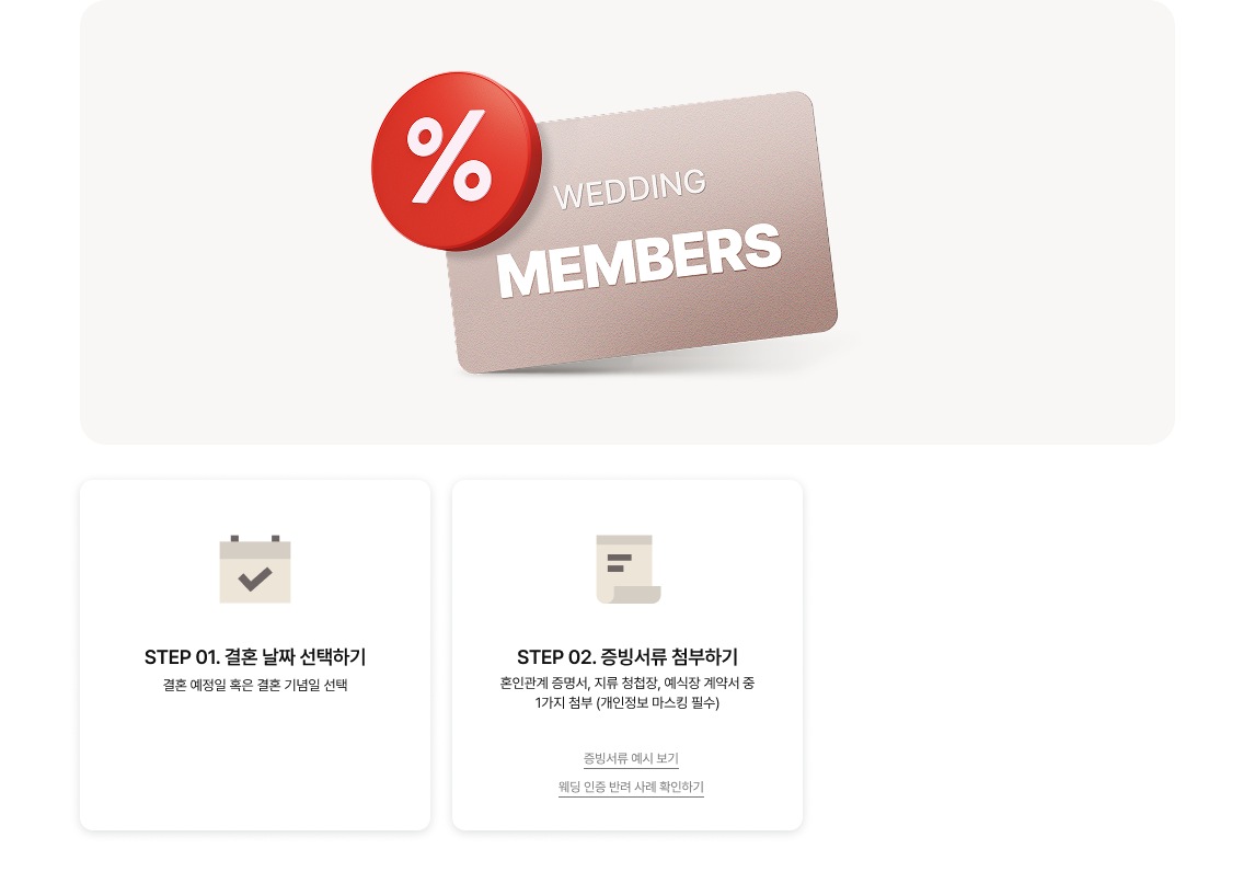 혼인관계 증명서, 지류 청첩장, 예식장 계약서 중 택 1