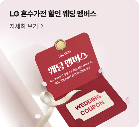 - 웨딩 인증 유지 기간 동안 LGE.COM의 웨딩 회원 혜택을 받으실 수 있습니다.