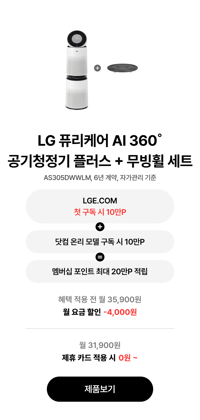 첫 구독 시 LGE.COM 멤버십 포인트 10만P 증정
