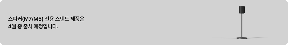 우측에 스탠드에 거치된 검은색 스피커 이미지가 있습니다.