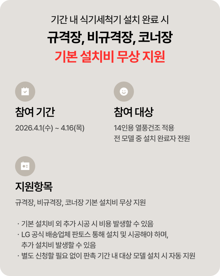 14인용 열풍건조 적용 전 모델 중 설치 완료자 전원
