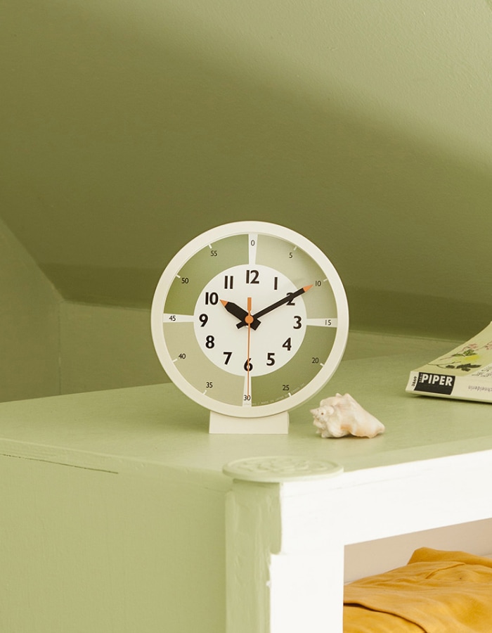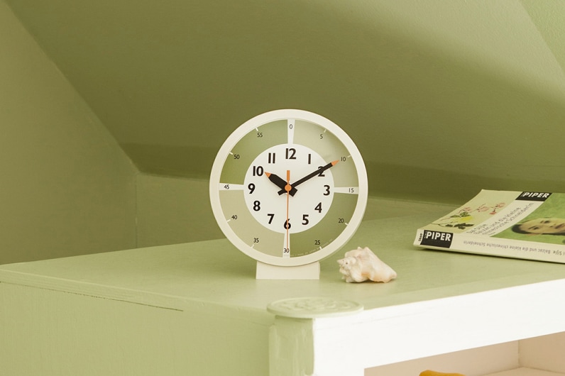 Fun Pun Clock 시계에 관한 관심이 커지기 시작한 아이들이 시간에 대한 이해를 증진시키기 위해 만들어졌어요. Riki Alarm Clock 심플한 형태와 가독성이 높은 12개의 볼드한 숫자가 감각적이에요.