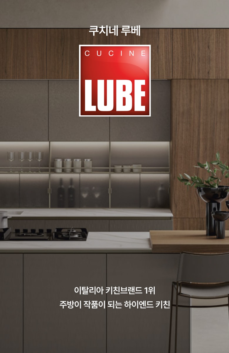CUCINE LUBE는 전 세계 1,650개 이상 쇼룸을 가진 글로벌 브랜드로, LX하우시스가 독점 수입 판매 하고 있습니다. 50년 넘게 쌓아온 경험과 기술력을 바탕으로 믿을 수 있는 품질과 합리적인 가격, 감각적인 디자인을 제안합니다.