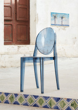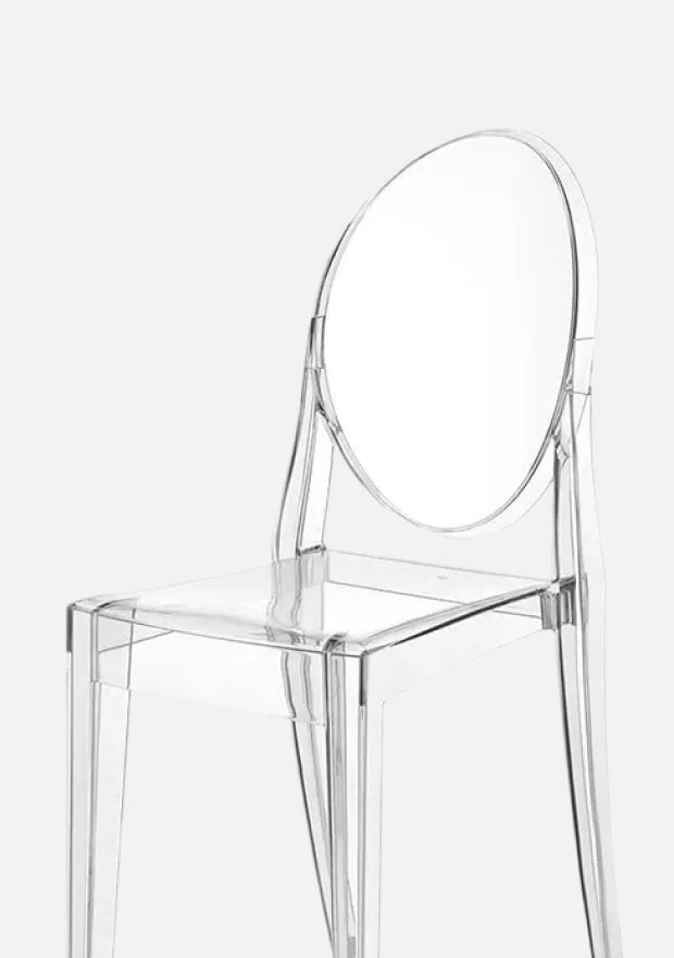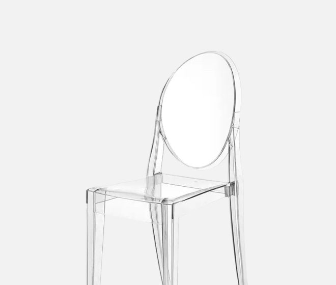 빅토리아 고스트 체어Victoria Ghost는 고전적인 아름다움을 현대적 해석으로 승화시킨 의자입니다. 우아한 둥근 등받이는 고대 메달리온을 연상시키며, 선형적이고 기하학적인 좌석은 시각적 균형과 절제를 보여줍니다. 투명하거나 다양한 색상의 폴리카보네이트로 제작된 이 의자는 단일 사출 성형 기술로 탄생해 견고함과 내구성을 자랑합니다.