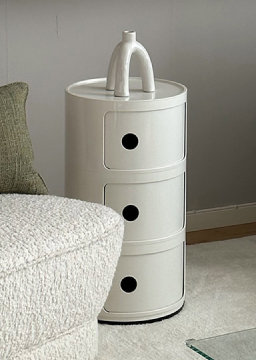 콤포니빌리 수납장Componibili는 카르텔의 베스트셀러이자, 1967년 처음 출시 이후 지금까지 카르텔을 대표하는 클래식 아이템으로 자리잡았습니다. 수납 문제를 해결하기 위한 안나 카스텔리만의 창의적인 접근법이 돋보이는 제품입니다.