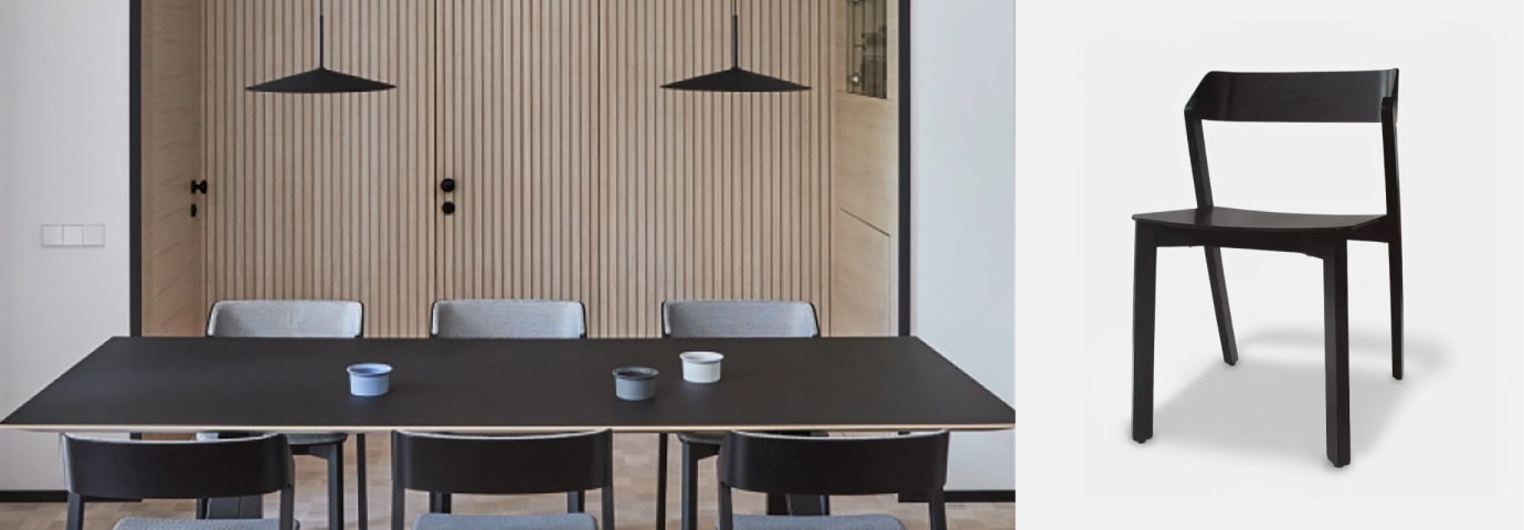 811 체어는 심플하고 미니멀한 디자인에 편안함을 더한 곡선형 벤트우드 의자입니다.