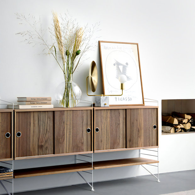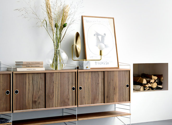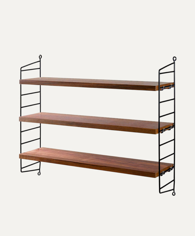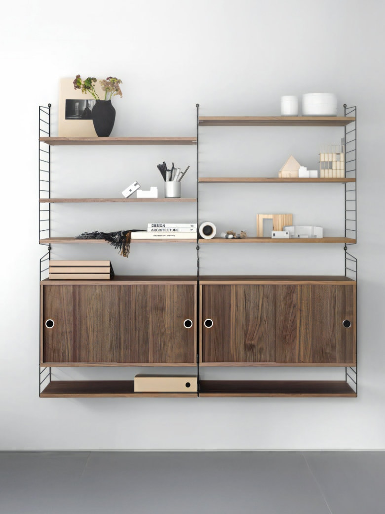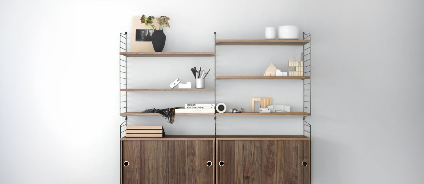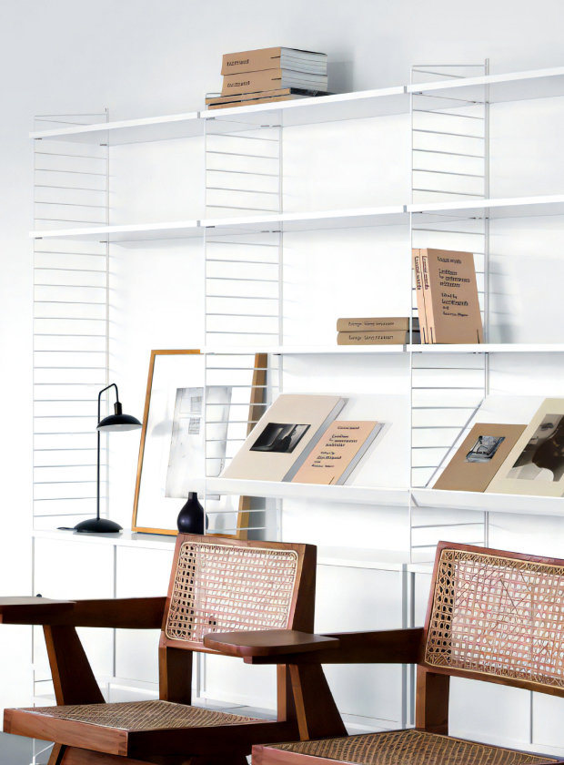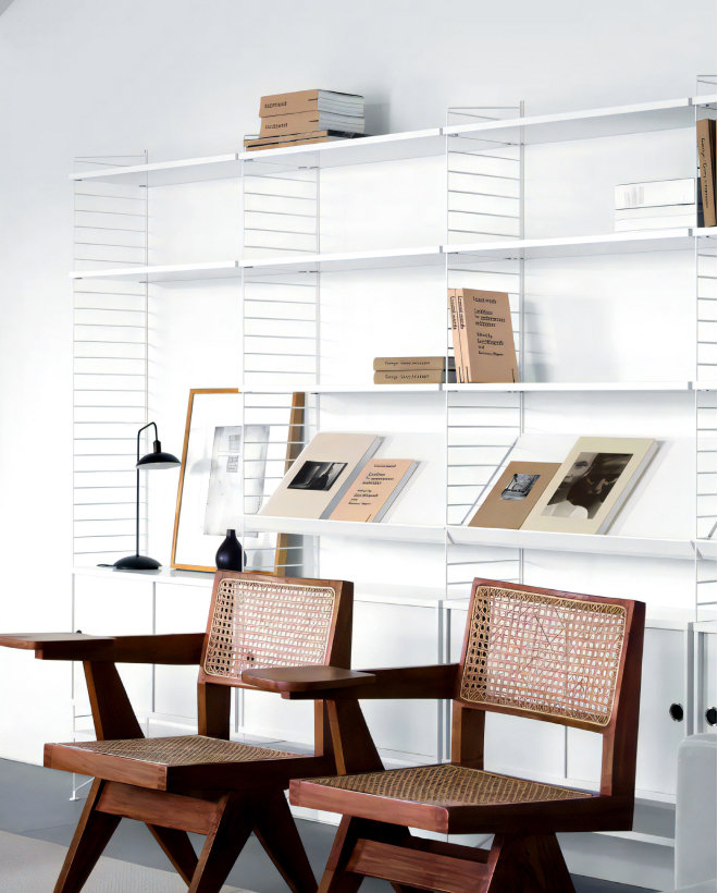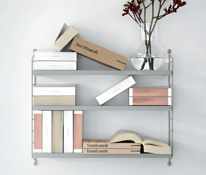 String System은 1949년 니세 스트리닝과 카이사 스트리닝이 설계한 북유럽 모듈 선반 시스템입니다. 시그니처인 와이어 패널부터 1954년 확장성을 위해 탄생한 플렉스 패널까지,